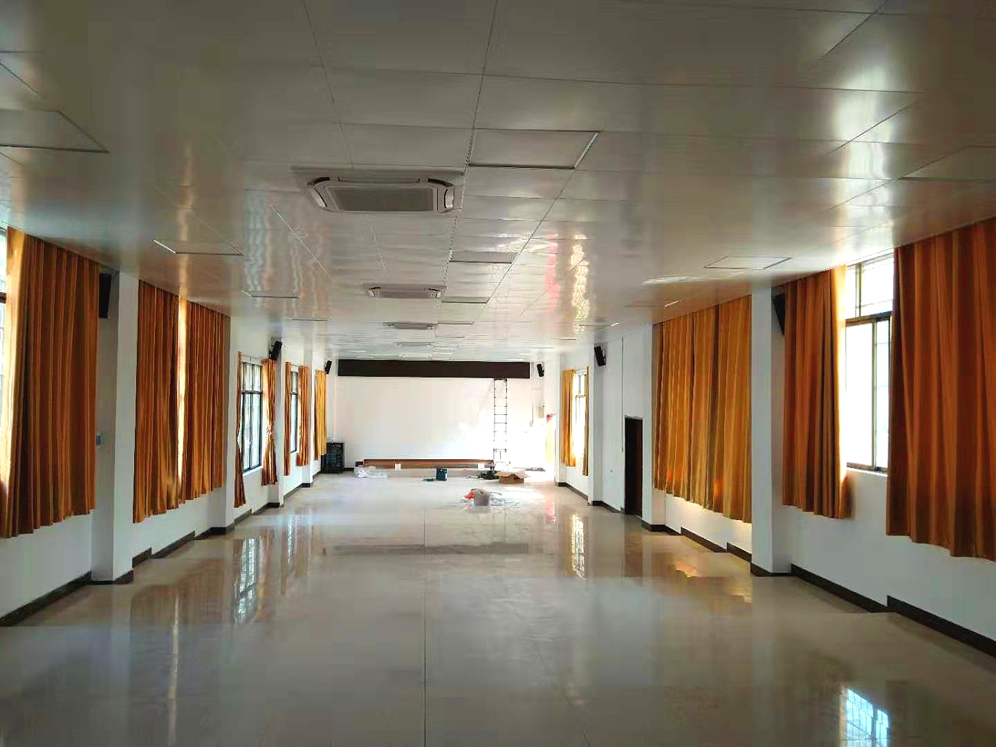為了使整個報告廳的聲壓級更加的均勻動聽,選用6只KH-44(4x4"線性音柱)充當(dāng)輔助擴音,均勻地壁掛安裝在廳堂前中后場兩側(cè)墻壁上,從而提升整個房間的語言和音樂清晰度。