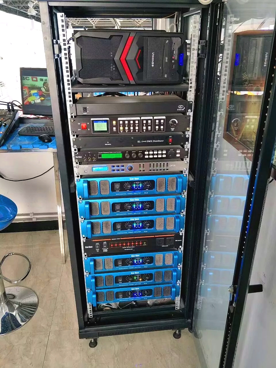 此外采用音箱處理器和PA系列功放,不但為音箱提供了精確的功率來源,還能進(jìn)行智能管理和精確的數(shù)字音箱處理控制。