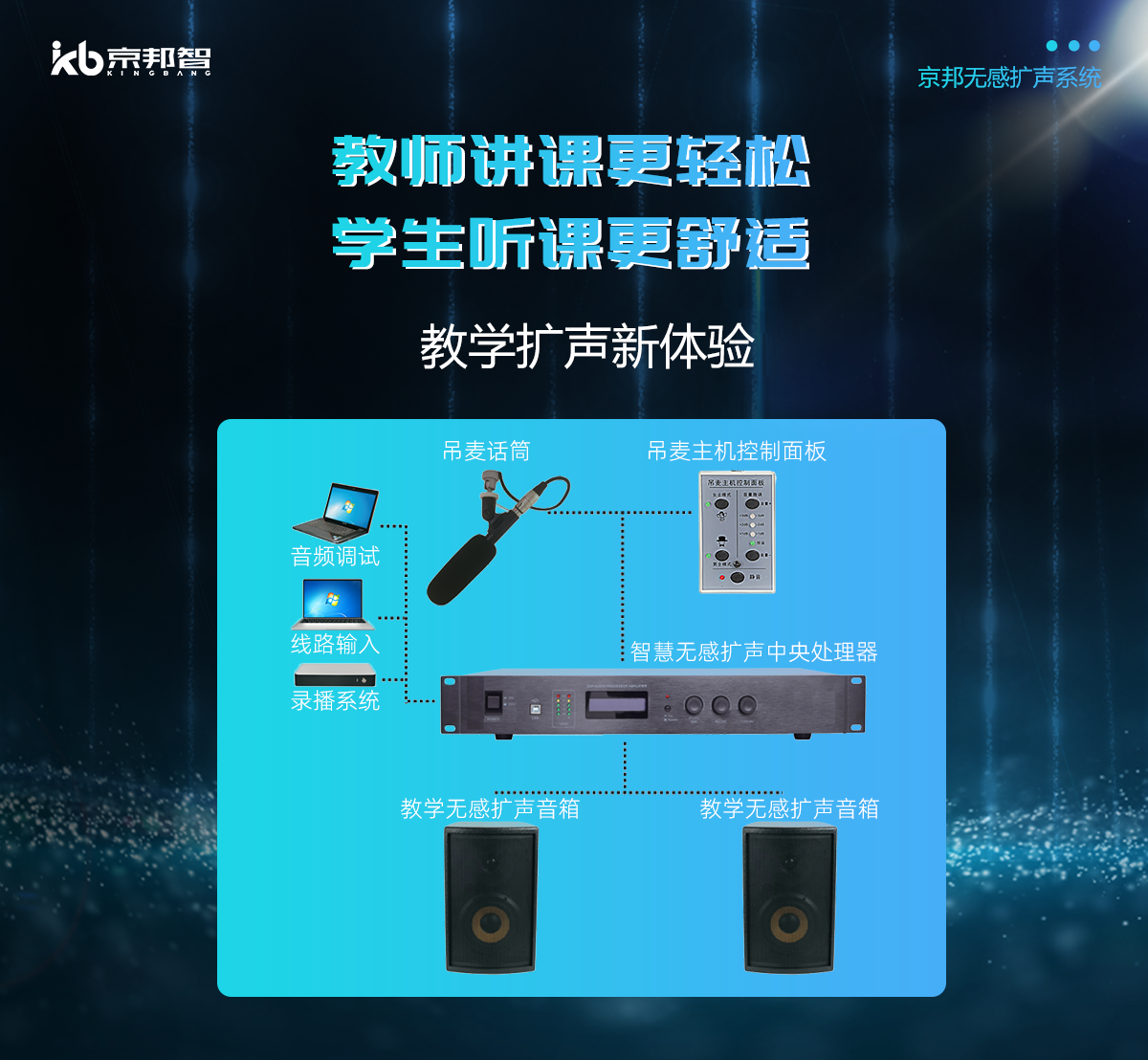 京邦無(wú)感擴(kuò)聲系統(tǒng)作為新一代無(wú)感擴(kuò)聲解決方案,內(nèi)置多種智能音頻算法,支持嘯叫抑制,混響抑制,智能降噪及自動(dòng)增益控制 ,同時(shí)實(shí)現(xiàn)語(yǔ)音增強(qiáng),在嘈雜環(huán)境下也可以實(shí)現(xiàn)智能無(wú)感高保真拾音與擴(kuò)聲。